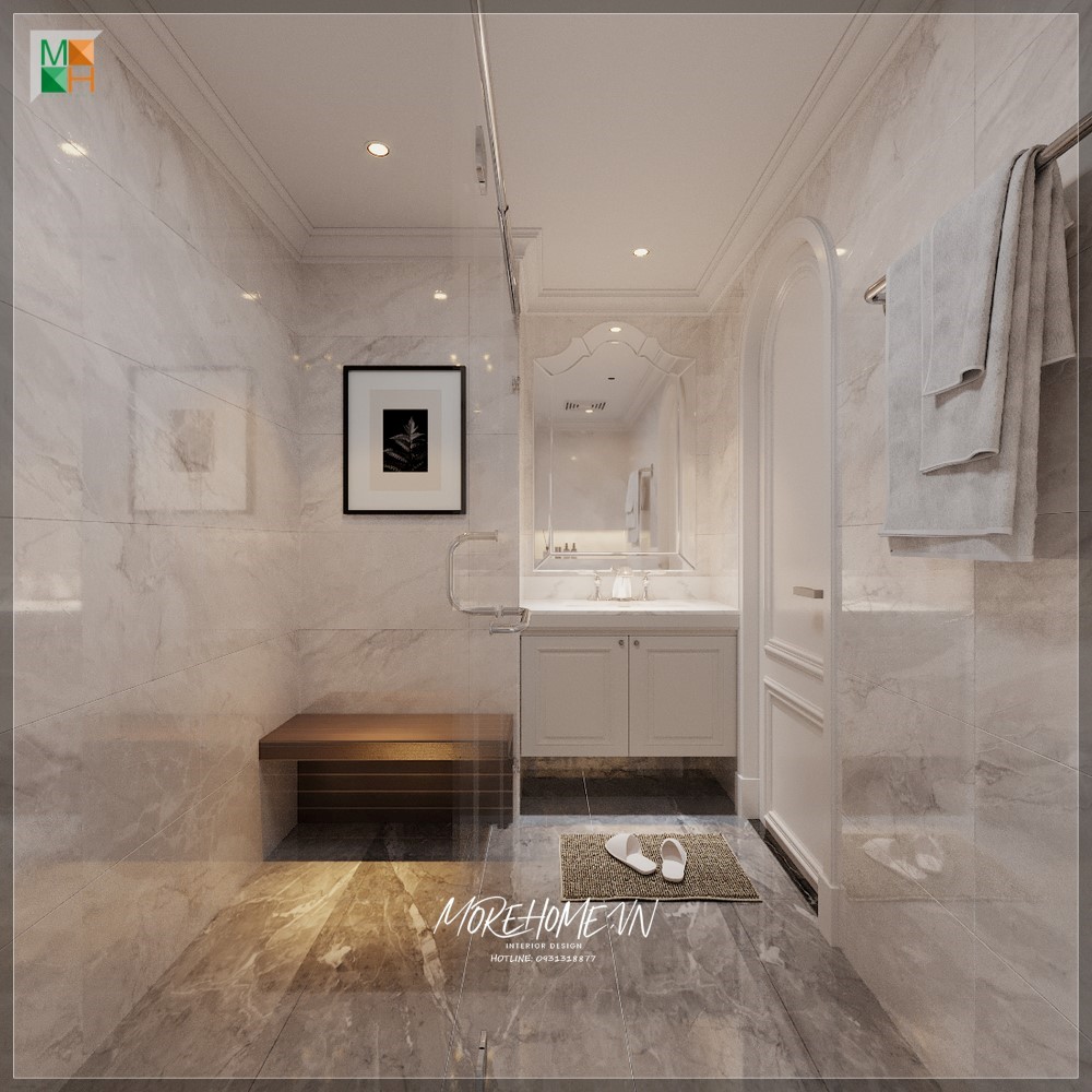 Thiết kế phòng tắm với nội thất hiện đại sử dụng tiện nghi phù hợp với không gian thẩm mỹ cao