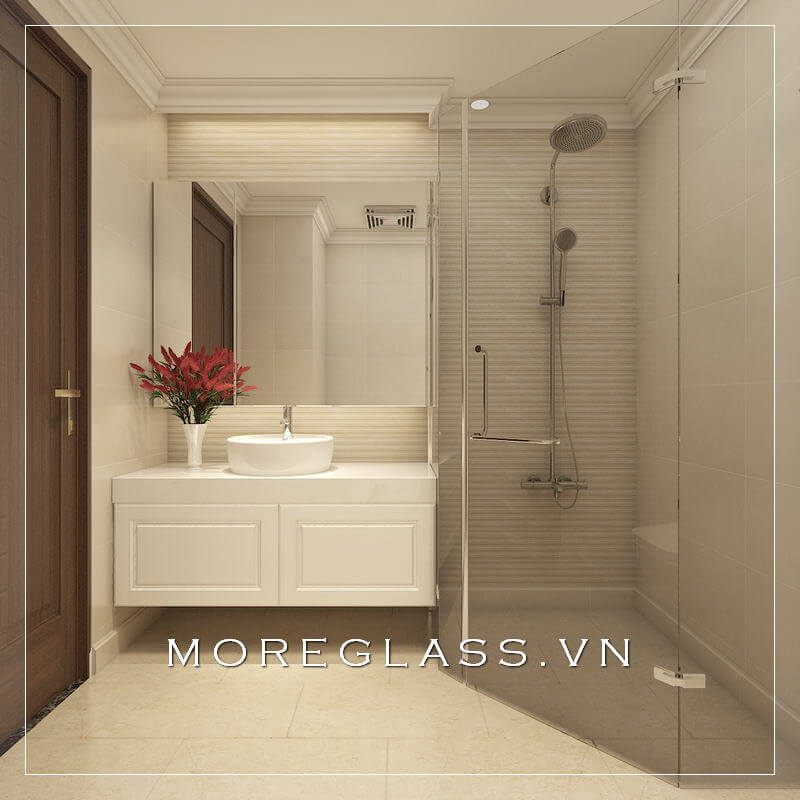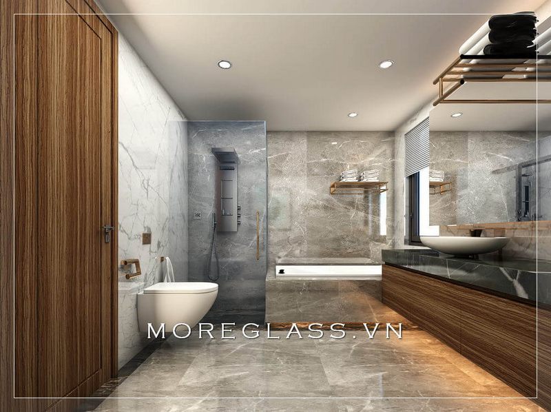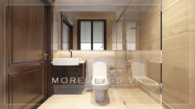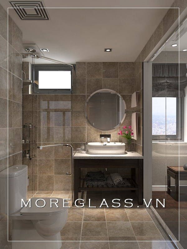 Thiết kế phòng tắm hiện đại sử dụng kính cường lực cao cấp ngăn nước hắt ra nội thất mang đến sự sang trọng, độc đáo