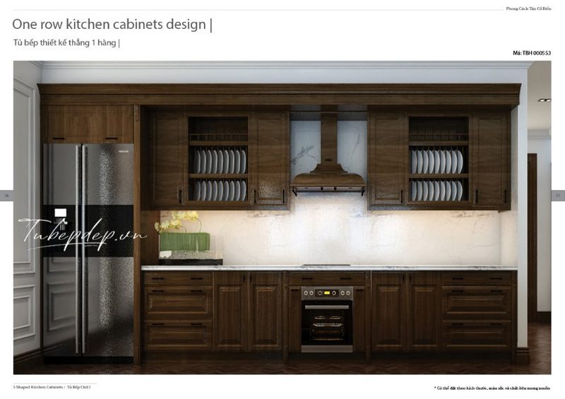 Sự kết hợp hài hòa giữa những đường nét tinh tế của phong cách tân cổ điển và sự trẻ trung, năng động của phong cách hiện đại, tủ bếp gỗ óc chó nhập khẩu mang đến không gian sang trọng và đầy tinh tế