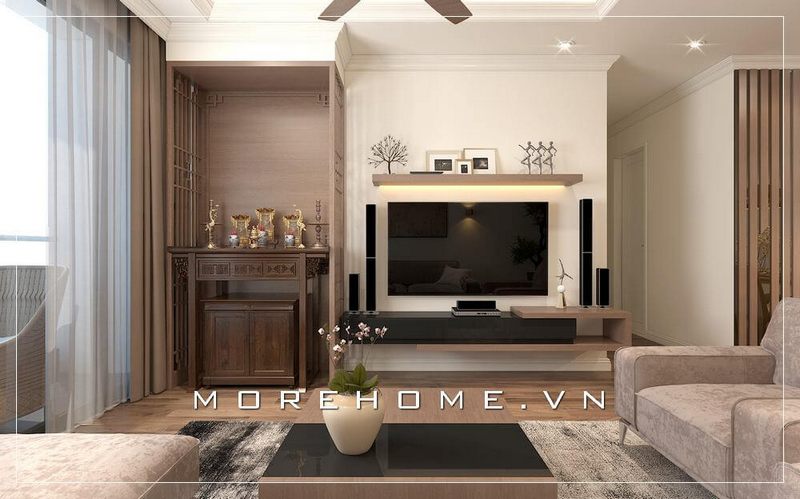 Mẫu thiết kế bàn thờ gỗ hiện đại cho phòng khách chung cư được ưa chuộng hiện nay