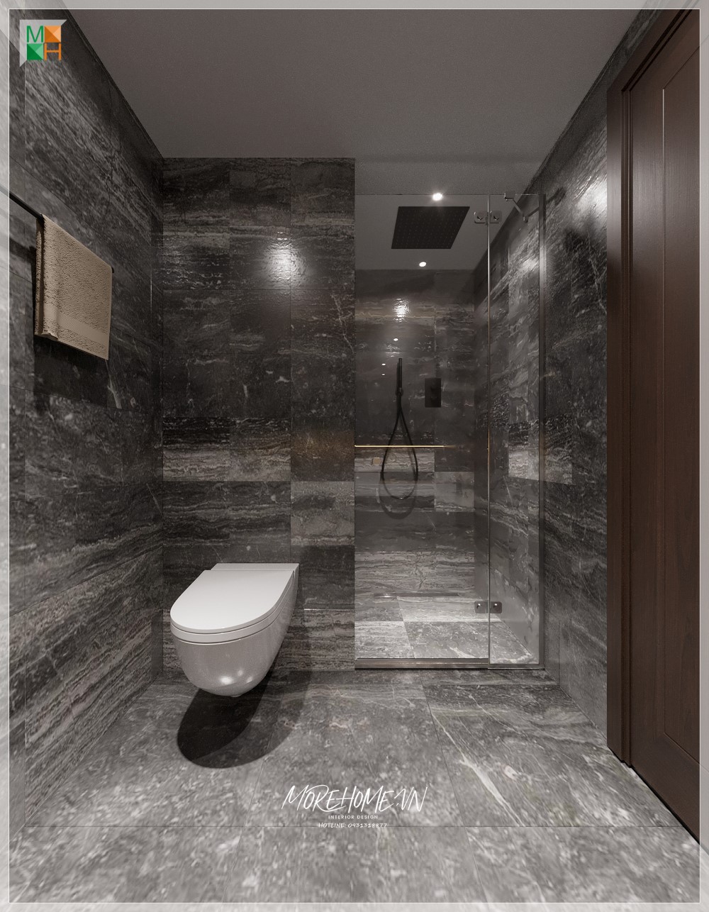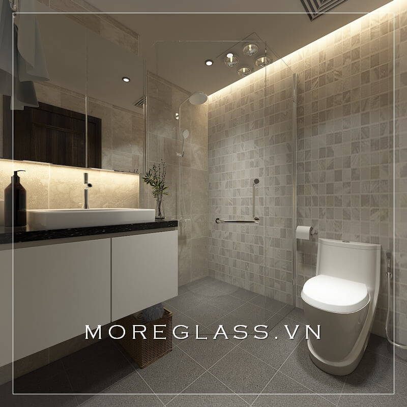 Vách tắm kính 90 độ ngăn không gian phòng tắm đứng tránh văng nước gây ướt át tới các không gian khác trong phòng