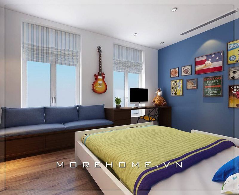 Thiết kế nội thất phòng ngủ bé trai hiện đại sử dụng tone màu xanh dương cá tính và năng động tạo nên nét độc đáo và mới lạ tại căn hộ chung cư