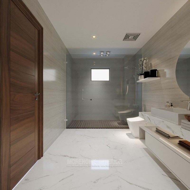 Sử dụng vách kính ngăn hiện đại cho phòng tắm biệt thự, nhà phố được ưu tiên lựa chọn và trở thành xu hướng của thời đại mới.